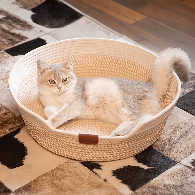 1pc White Rope-Woven Round Cat Nest with Comfortable Cushion, Soft And Breathable, Universal for All Seasons, Indoor Kitten Small Dog Pet Sleeping Bed